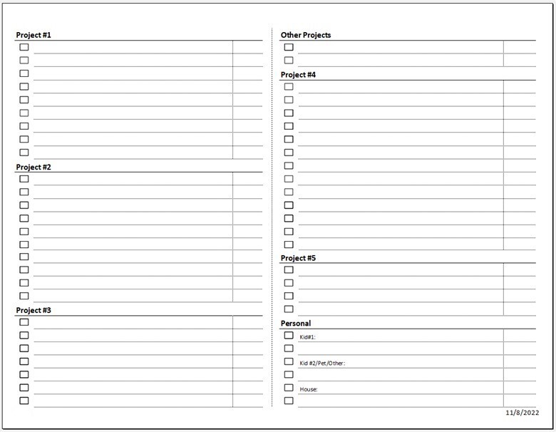 FREE downloadable Excel file to edit as you see fit. Just fill out your projects, print, add your tasks, and enjoy crossing them off.